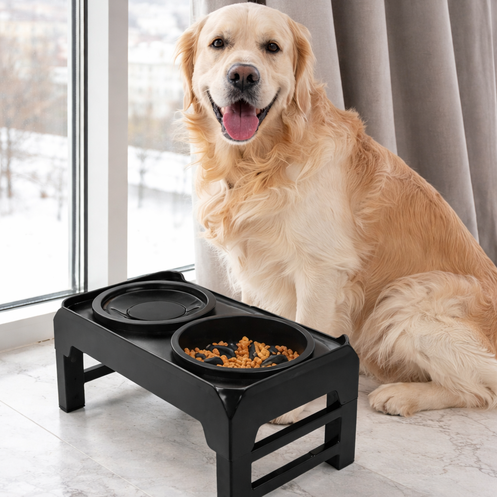 Adjustable Elevated Pet Feeding Bowl with Slow Feeder – Anti-Spill Design for Dogs & Cats