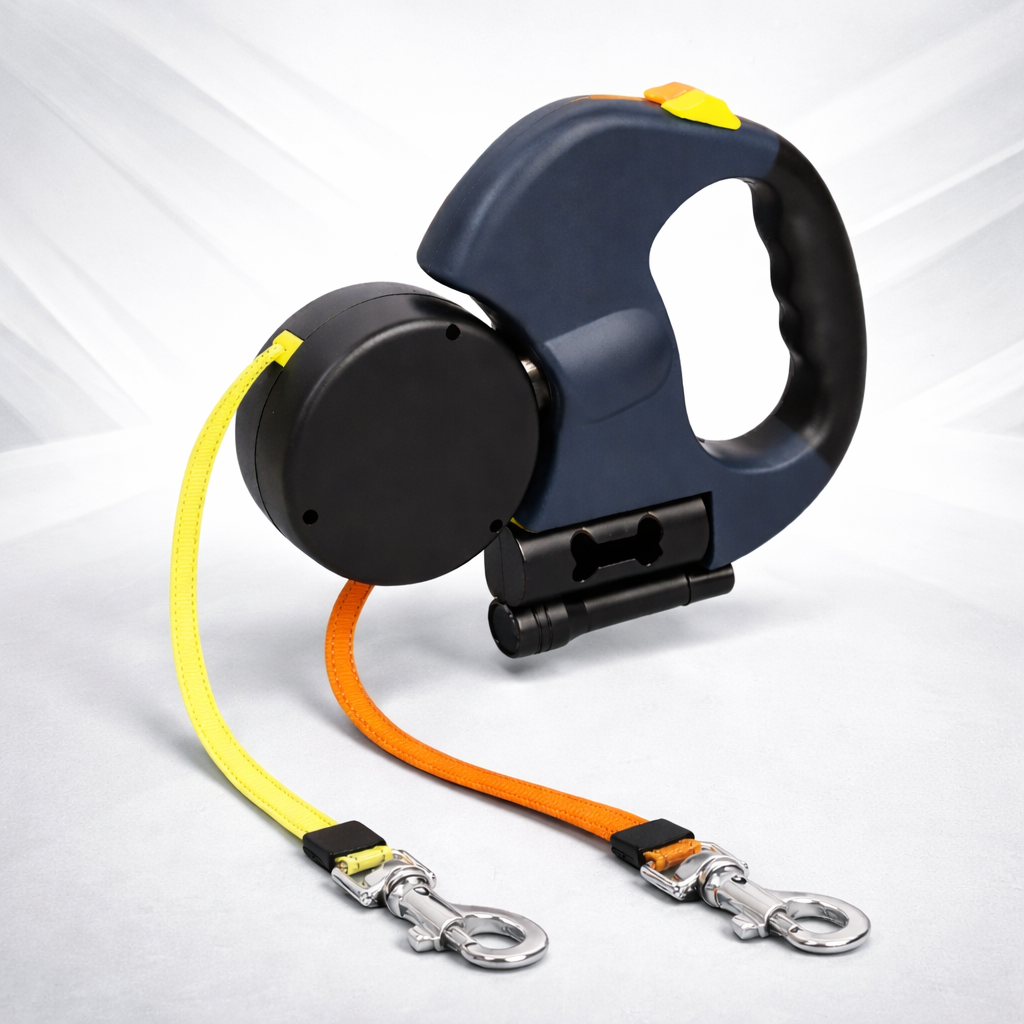 Walk two dogs with confidence and control using this dual retractable dog leash designed for smooth, tangle-free handling. The dual swivel system allows each leash to move independently, helping prevent twisting and tangling during walks.